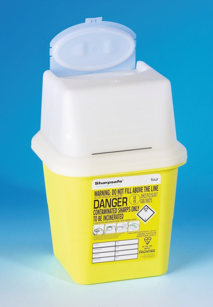 Our sharps bin is perfect for safely disposing of storing and eventual route to incineration of a variety of sharps (sharp objects) you would expect to encounter in scientific and health settings. Buy this bin from us and keep staff and customers safe from hazardous sharp objects.